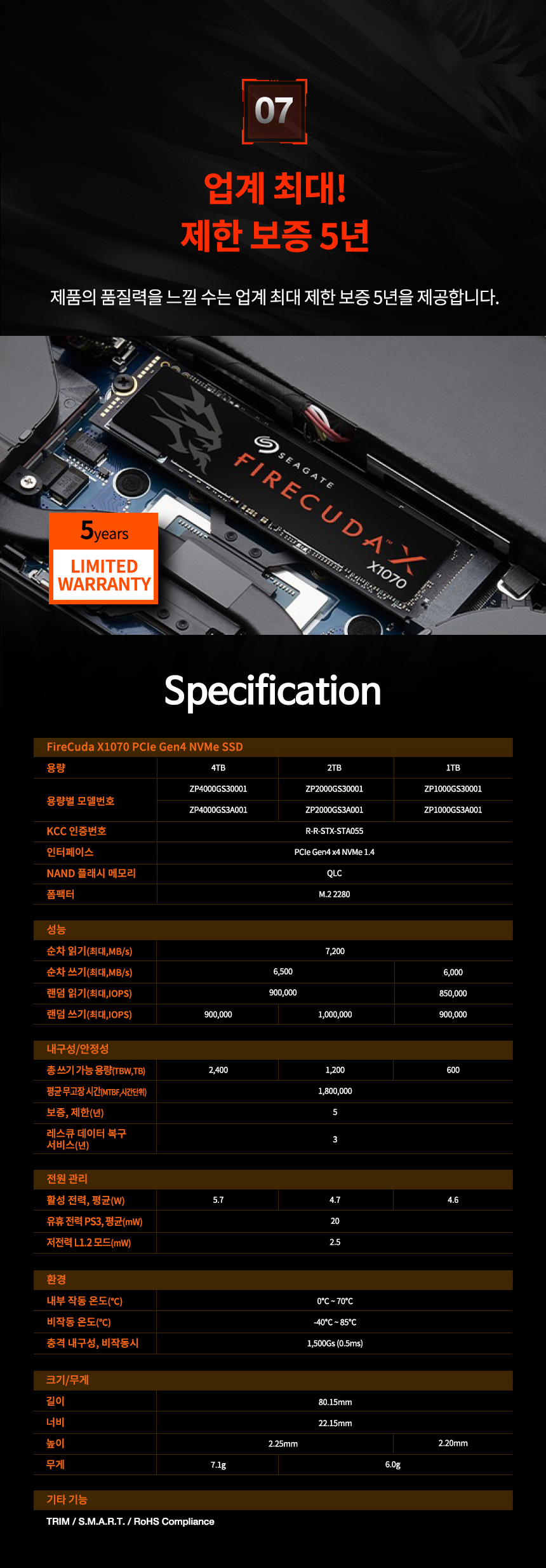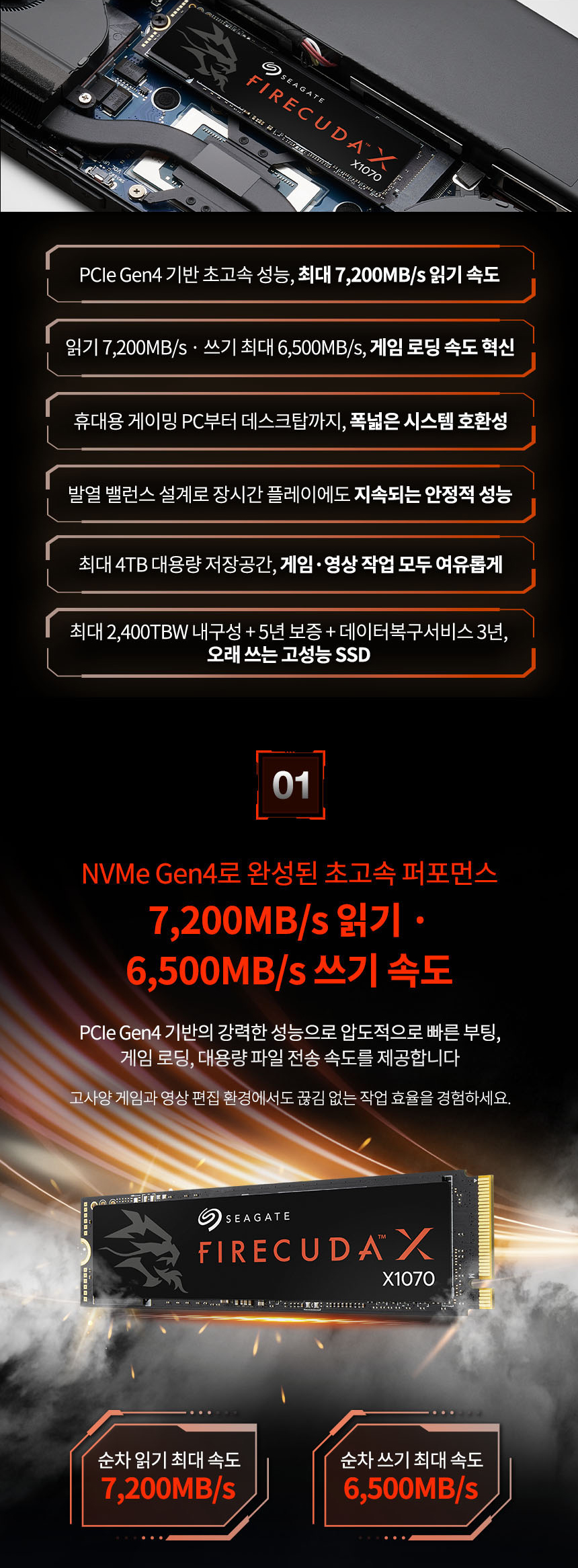 • SEAGATE 파이어쿠다 x1070 M.2 NVMe SSD 2TB